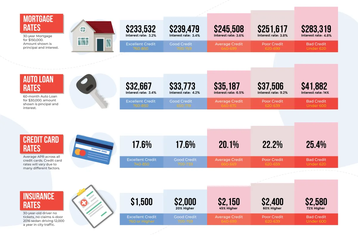 With a higher credit score, you could lower your current interest rates, lower insurance premiums, and get better rates on new credit & loans.